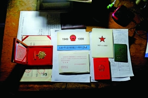▲老人珍藏的抗战胜利纪念章、证书、证件等物品。即便多年过去,这些物件仍然崭新。