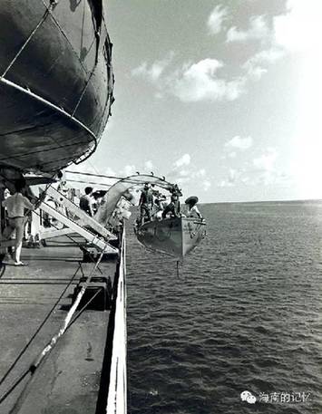 1991年5-6月,海南省组织多学科专家对西沙群岛进行为期20多天的综合科学考察,本人随考察队工作。这是考察队员从工作母船“向阳红14号”科考船上乘小艇下海前往岛礁工作。摄于1991年6月。