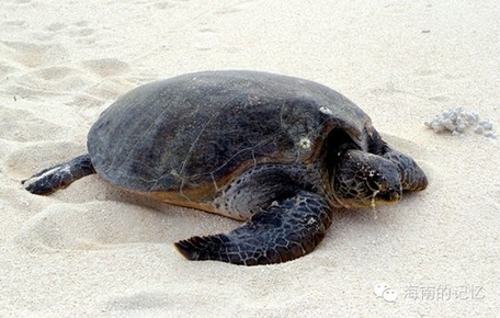 中建岛上的绿海龟。西沙的许多岛屿是海龟的重要繁殖地。摄于1991年6月。