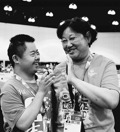 相比奖牌成色的改变,姚致兰更看重田志康个人与家庭的变化,“参加两次特奥会,田志康的性格变得开朗多了,更愿意与人交流,也爱笑了。更关键的是,他的心理素质非常过硬。”这对师徒都来自山西太原,弟子的家庭情况,姚致兰也有所了解,“为了让田志康上条件较好的私立康复学校,他的父母辞职下海,办起了旅行社。但当时,他的父母还是不能完全接受这个有智力障碍的孩子,不愿让孩子出现在众人眼中,躲着藏着,甚至每天让保姆带着田志康从侧门出入。”