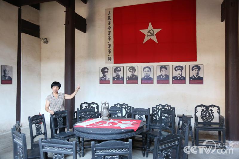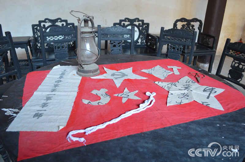 在修水县博物馆红色展区,形象生动地还原了当年工农革命军第一面军旗制作的场景。邓新华的外公梁幼陶曾参与工农革命军第一面军旗的制作,邓新华指着墙上的一面军旗告诉记者。“这就是我外公亲手参与制作的军旗,1927年8月份,我外公和村里的其他裁缝一起,通宵达旦地轮番缝剪一个星期,赶在9月9日秋收起义之前抢制出100面军旗。”
