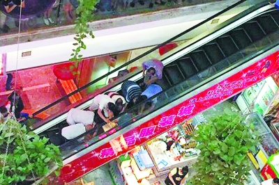 现场多名目击者证实,事发时间是在下午3点多,当时一、二楼间的下行电梯上有不少乘客。人们突然听到了孩子的哭喊声,位置在电梯中部,在孩子附近的人立刻意识到,可能是电梯夹住了孩子的脚。在孩子前方的一名女乘客反应十分迅速,直接冲到扶梯底部,并按下了停止运行的按钮。