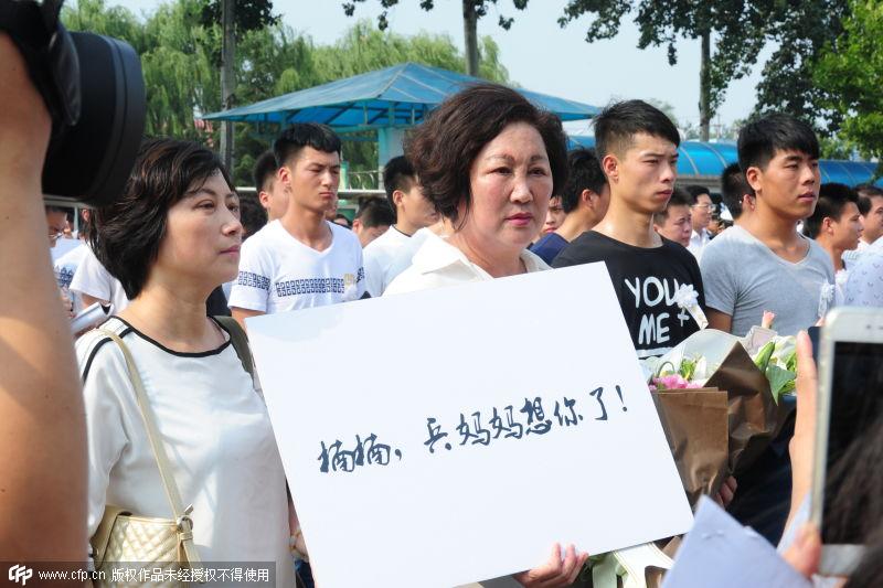 2015年08月02日,山东济南,因遭遇恐怖袭击英勇牺牲的我驻索马里大使馆警卫人员、武警山东总队临沂支队上士张楠烈士遗体告别仪式举行。/CFP