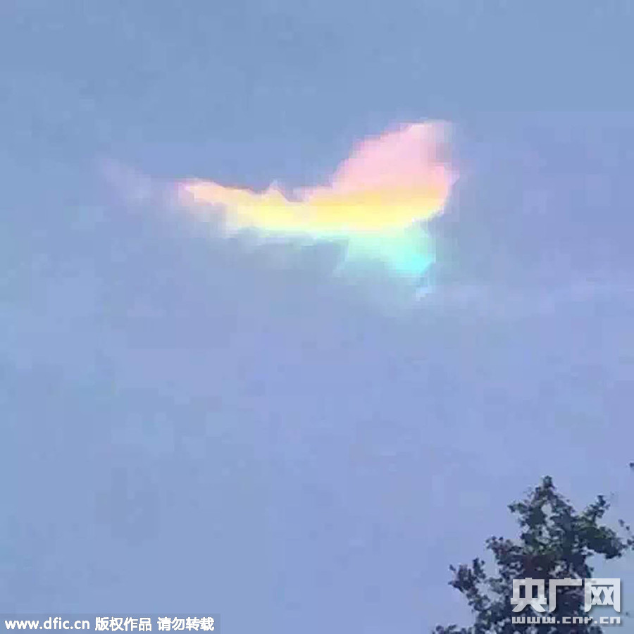 重庆晚报记者在读者拍摄的多幅照片中看到,这片彩云形似凤凰,展翅高飞,呈现出粉红、淡黄、浅蓝、浅紫等色彩,这片云的周边没有其他彩色云。市气象专家解释称,这种晴空孤立的云团可能与热力作用下大气中的湍流波动有关,使得空中出现小范围上升运动导致水汽的相变。水汽凝结或凝华为水滴或冰晶或两者的混合物,当阳光穿过云层时,产生散射、衍射、吸收等现象,进而使彩云出现成为可能。市气象台首席预报员邓承之称,这也是夏天一种变异的积云。这种云不会持续太久,随着风吹和蒸发改变形状、移动至消失,不过七彩云还是比较罕见的。