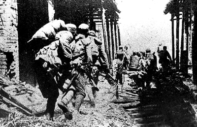 中国军队在台儿庄与日军展开激烈巷战。新华社发