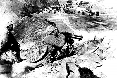 平型关战斗中,115师某部的机枪阵地。新华社发