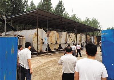 院内空无一人,此前记者暗访过程中见到的油罐车已不见踪影。安监局一名工作人员来到油罐前,捡起一块石头,逐个敲击8个大油罐,油罐连续发出“铛铛”的清脆声,“这里面都没油了,如果有油,肯定是闷响。”