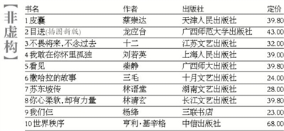 新京报书香榜数据由北京图书大厦、王府井书店、开卷公司、京东网上书店等提供。