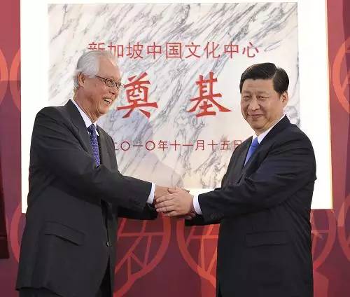 图为:习近平与吴作栋出席新加坡中国文化中心奠基仪式