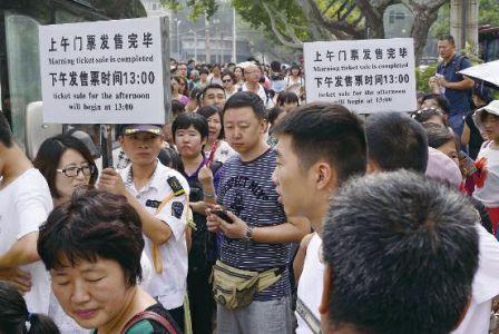 陕西历史博物馆门口的领票队伍