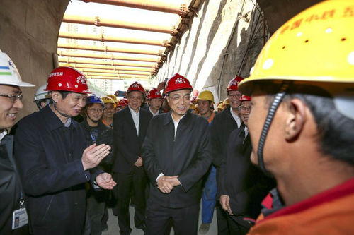 2015年2月14日,李克强来到贵阳轻轨1号线施工现场,考察城市基础设施建设。总理戴上安全帽走进隧道,询问工程进度。多数施工者来自农村,李克强称赞他们是城市功臣。他叮嘱省领导,等这条轻轨修通后,你们一定要请回这些一线建设者,乘坐首班列车。