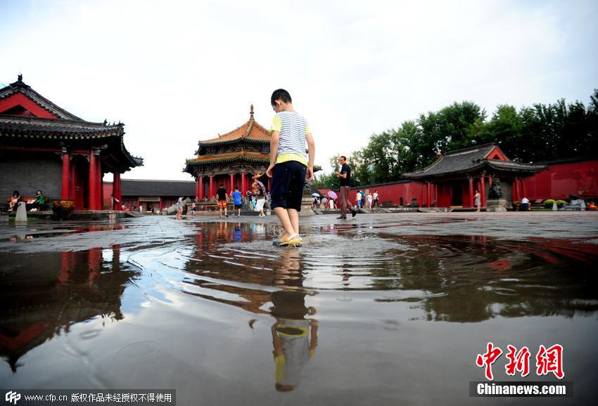 2015年08月09日,辽宁省沈阳市,沈阳发布暴雨橙色预警。一场暴雨突袭沈阳,沈阳故宫积水严重。图片来源:CFP视觉中国