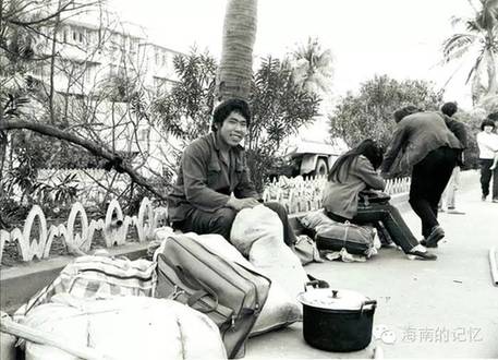 海口街头等待工作的外来打工者。摄于1989年2月。