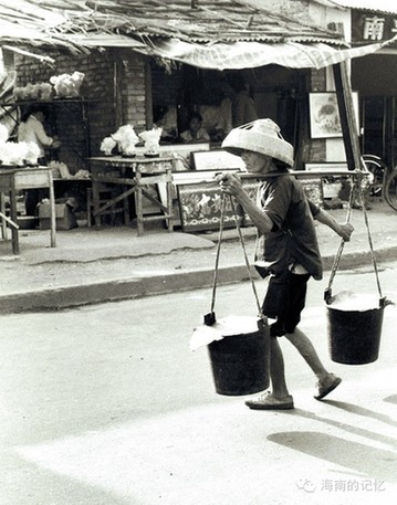 海口博爱路上跳水的妇女。摄于1989年2月。