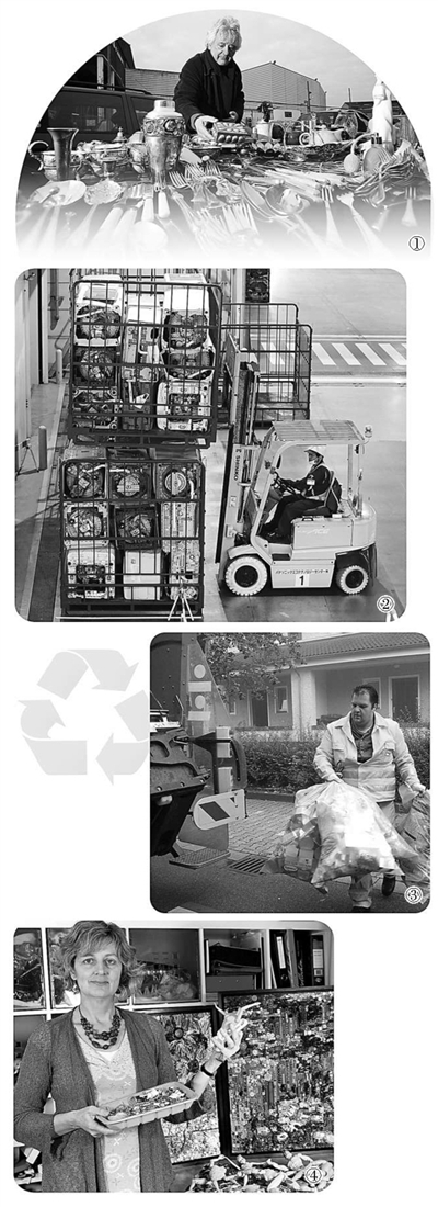 图③:德国DSD公司定期收集居民区黄色垃圾桶(袋)内带有“绿点”标志的垃圾。
