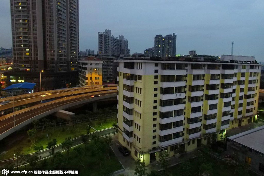 2015年8月11日,广州市海珠区永兴街28号,两栋“钉子户”被洪德立交桥呈360度包围,成为奇特的“圈中楼”景观。一个景象,2个楼房被洪德立交所围,成为圈中楼,所有经过这个路段的车辆都可以看到这2栋楼的情况,成为这个路段的一个奇特景观。日夜交替,如梭的车流宛如时光的印记将旧时代困在其中。