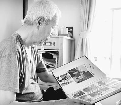 大道武司正在翻看中国养父母的照片。本报记者 刘军国摄