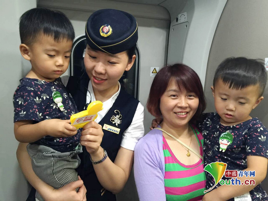 正值暑运,暑期是传统旅游旺季,除学生客流外,旅游观光、亲子游客流是暑运客流的主力。儿童旅客乘车较多,根据列车空间密闭,安全宣传收效甚微,跑跳儿童、触碰安全设备等不安全隐患,G606次二组特推出“幼儿爱心包”,包内装有尿不湿及拼图,橡皮泥、折纸、魔方、沙画、故事卡片等益智玩具,供小朋友在旅途中自娱自乐,增添乐趣,真正地使旅客感受体会到“上车有亲切感,旅途有温馨感,下车有留恋感”。还为有哺乳需求的旅客提供“爱心哺乳袋”,既解决了在公共场所哺乳的尴尬,又可以减轻婴儿的重量,践行“温馨出行”。