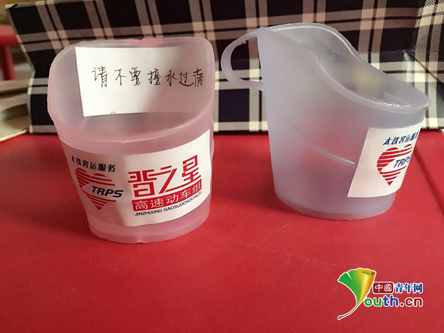 G606次二组为旅客提供“防烫杯托” 陈夏供图