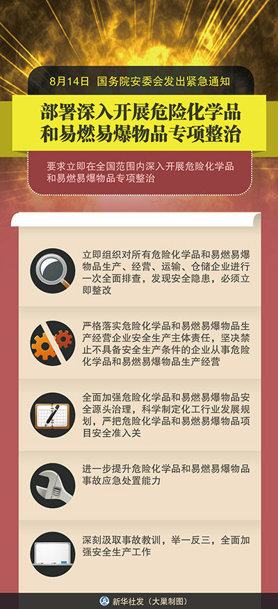 图表:国务院安委会下发紧急通知 部署深入开展危险化学品和易燃易爆物品专项整治 新华社发大巢制图