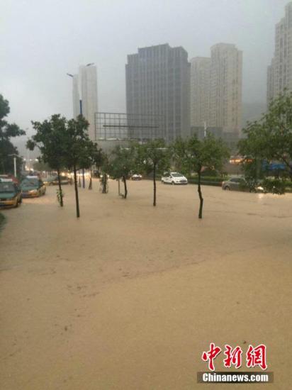 福鼎中汇广场附近遭洪水淹没。林宣 摄