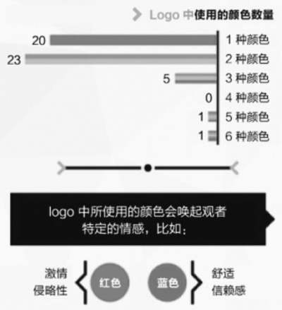下面这些信息图,通过检视logo的颜色、字体、形状和其他几个标准,在数量上进行了划分。有一些重要的发现:被分析的50个logo中,红色和蓝色是最为流行的颜色。而且其中有43家公司不会在logo中使用两种以上的颜色。形状、字体和颜色是最基本的三个部分,而他们也传达出了logo的主要情绪,以及传递给人的主要印象。