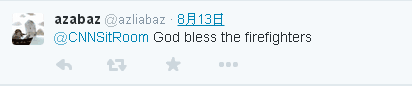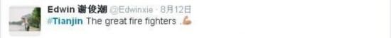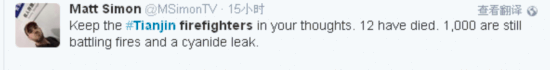 在社交媒体“推特”上,关于此次爆炸事件的搜索词有多种组合,“天津”成为核心搜索名词。全世界的网民都在紧张关注着事态发展,人们无不对在爆炸中不幸遇难的民众表示哀悼。在12名消防人员不幸遇难的消息传播到“推特”后,有网民发布“推文”道:“请将这些消防员铭记在心,已经有12人殉职,还有1000人在同大火以及氰泄露作战。”