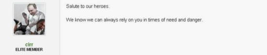 “向英雄致敬,我们知道,在任何需要帮助及身处险境时,你们是我们能够依靠的人。”