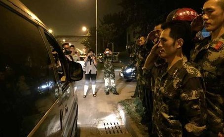 消防员宁宇的母亲来到驻地。