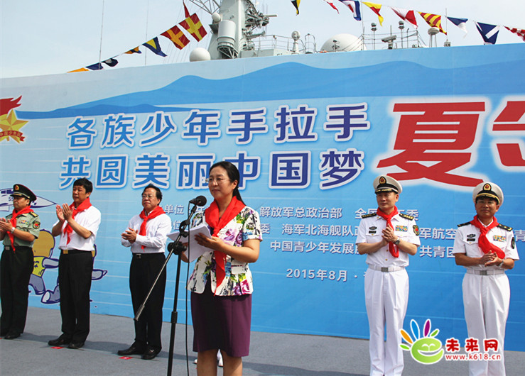 在纪念中国人民抗日战争胜利70周年暨世界反法西斯战争胜利70周年之际,8月10日至14日,由共青团中央、解放军总政治部、全国少工委主办的2015年“各族少年手拉手,共圆美丽中国梦”夏令营在山东省青岛市举行。来自各地56个民族的少先队员代表参加了夏令营活动。团中央书记处书记、全国少工委主任罗梅、解放军总政治部组织部副部长商亚恒及海军有关方面负责同志出席开营仪式。