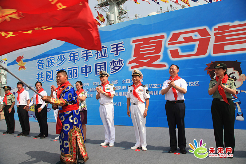 “各族少年手拉手”夏令营活动自2011年起已连续开展了五年,2015年的活动由共青团山东省委、海军北海舰队政治部、海军航空工程学院青岛校区、山东省少工委、中国青少年发展服务中心、共青团青岛市委等单位共同承办。(记者 钮韵涵)
