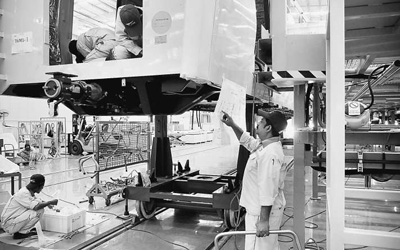 厂房里,工人们正在8个组装平台上干得热火朝天。24岁的哈尼夫·阿瑟林·祖基菲里刚刚与公司续签劳动合同。“我非常喜欢这个工作,能为自己的国家制造火车有意义极了!”祖基菲里难掩兴奋之情,“我对火车制造很有兴趣,在这里工作不仅可以获得不错的收入,更重要的是能够学习到许多有用的东西。”东盟制造中心点燃了祖基菲里深藏在内心的火车梦,他还筹划着未来有机会到国外学习制造火车。