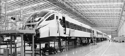走进总装联合厂房,最先跳入眼帘的是4节初具规模的高速列车车厢,这是为马来西亚交通部量身打造的米轨高速列车。这笔订单共10列6节编组列车,除了4列在中国国内生产外,其余6列均将于今年年底前在东盟制造中心完成生产制造和调试工作。