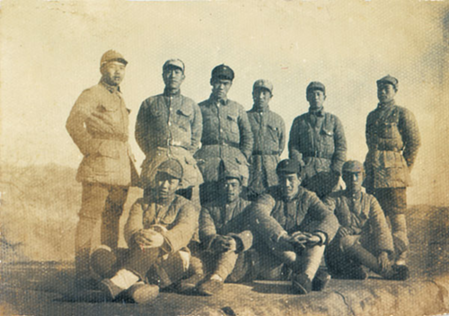 韩新秋和他的战友们(后排右一为韩新秋,摄于1945年1月)