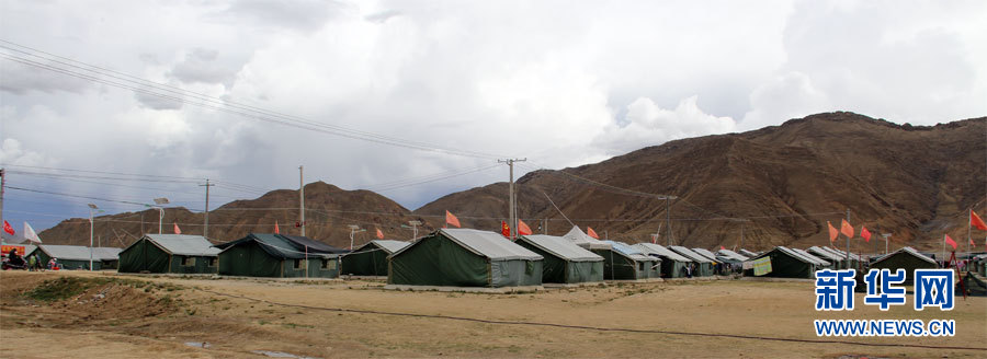 图为安置区里的帐篷。新华网 冯文雅 摄