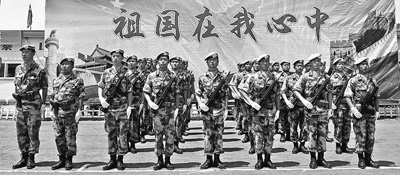 参加授勋仪式的中国维和士兵。