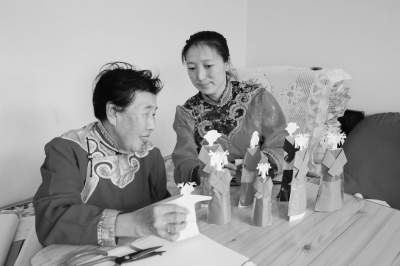 近年来,内蒙古阿荣旗查巴奇鄂温克族乡对濒危非物质文化遗产进行有效的抢救保护,通过老艺人带徒传艺、举办相关传习班等形式培养新一代传人。图为查巴奇乡民间手工艺人那英秀在传授纸偶制作。 卢恒久金亮摄