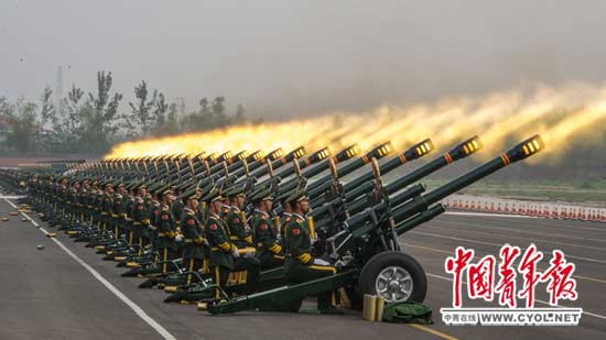 礼炮方队的训练很壮观。本报记者 李隽辉/摄
