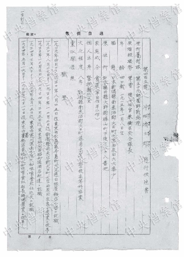 8月22日,国家档案局在其官网发布了《日本侵华战犯笔供选》第十二集:片桐济三郎。根据第十二集摘要,据片桐济三郎1954年8月17日笔供,他生于1915年,日本新潟县人。1936年参加侵华战争,1945年8月被俘。新华社发