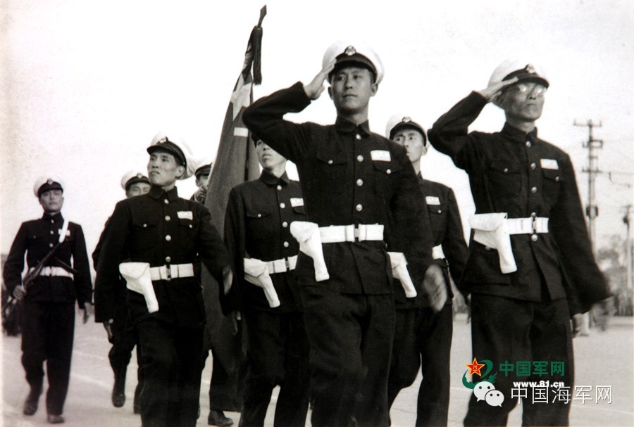 1949年10月1日开国大典上,解放军的行列里第一次有了海军,由海军大连舰艇学院的前身——安东海校的50名学员组成了海军方队,走在受阅队伍最前面。52天后的11月22日,新中国第一所高等军事学府“大连海军学校”正式成立。