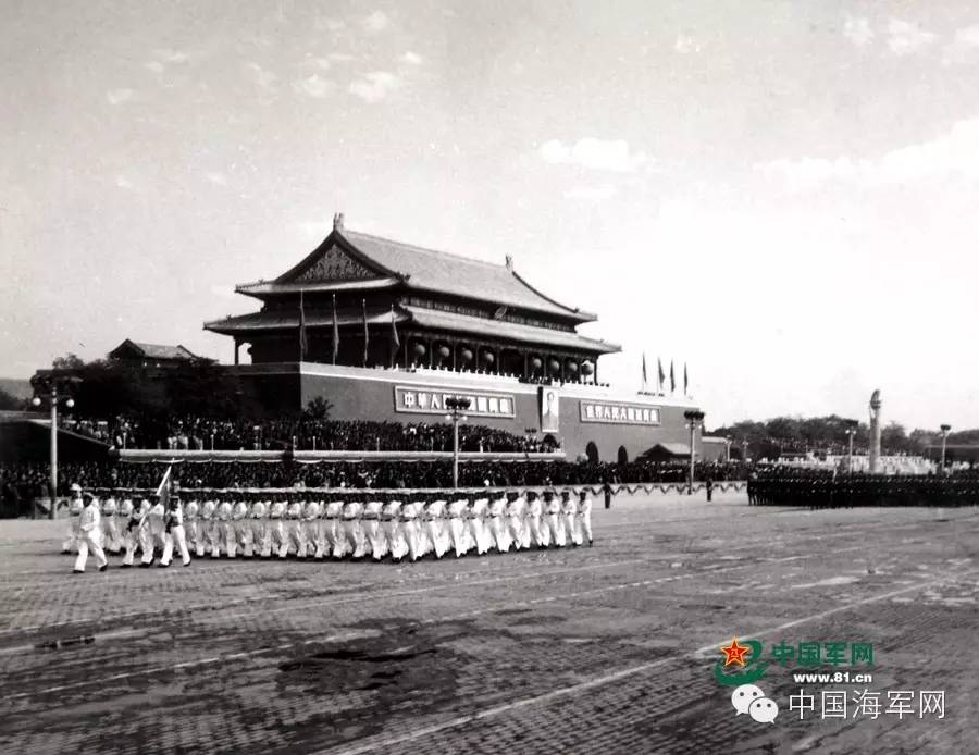 1954年10月1日,在新中国成立5周年的阅兵中,海军学员方队气势如虹地通过天安门广场,站在城楼上的毛主席频频点头,高兴地对海军司令员兼大连海校校长肖劲光说:“海军走得好,走得像一个人一样!”