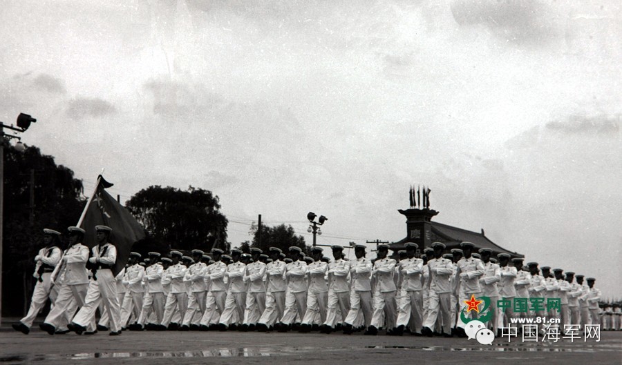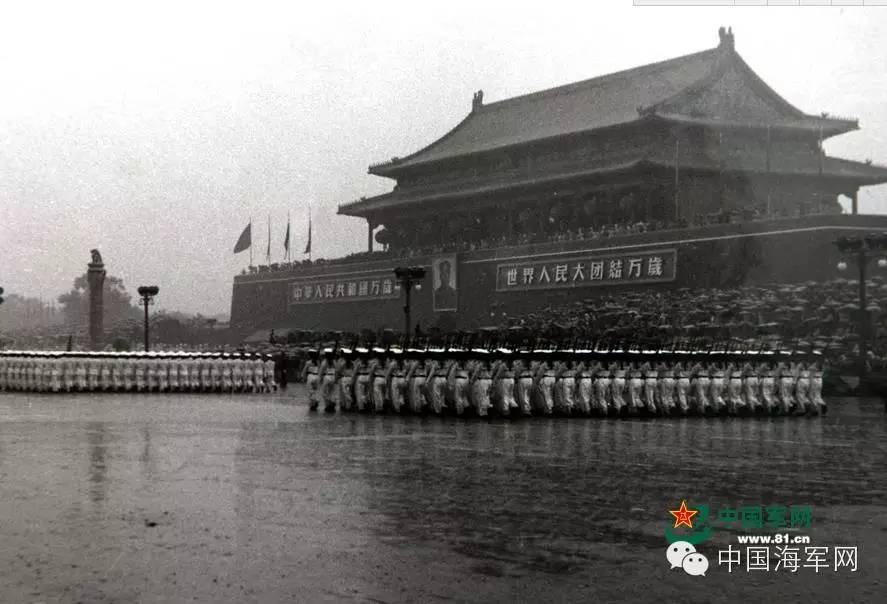 1956年大阅兵海军方队冒雨通过天安门广场。陆文俊 摄
