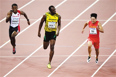 本次世锦赛跑进半决赛后,苏炳添曾坦言,并不想和博尔特、加特林这样的强手分到一组。有道是怕什么来什么,昨晚的半决赛,苏炳添又和博尔特站到了一起,而且是相邻的跑道。