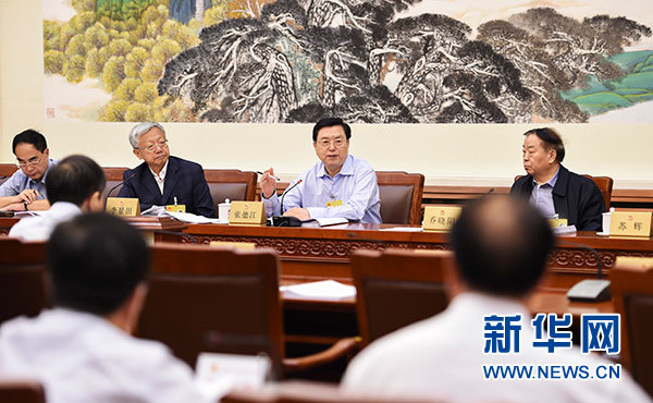 8月26日,十二届全国人大常委会第十六次会议举行分组审议,张德江委员长参加审议。 新华社记者谢环驰摄