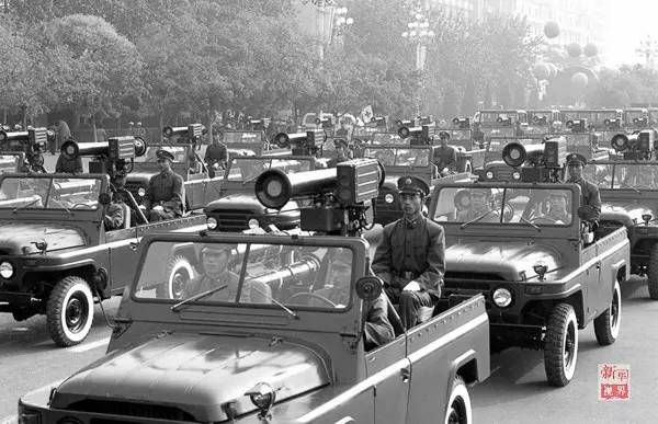 ↑接受检阅的陆军反坦克导弹部队(1984年10月1日摄)。新华社记者 张赫嵩摄