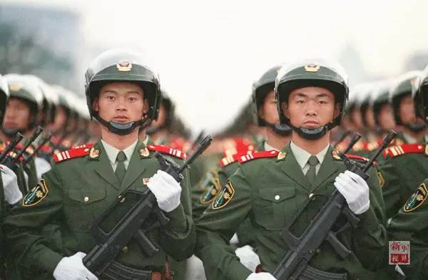 ↑中国人民解放军三军仪仗队参加阅兵分列式检阅(1999年10月1日摄)。新华社记者 戚恒摄