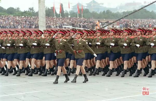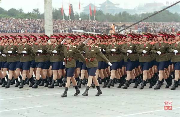 ↑女兵方队接受检阅(1999年10月1日摄)。新华社记者 王呈选摄
