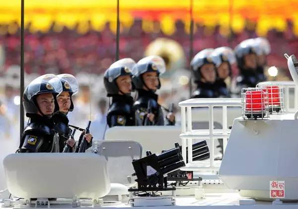 ↑首次参加国庆阅兵式的武警特警方队(1999年10月1日摄)。新华社记者 高洁摄