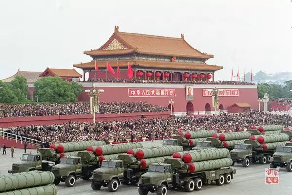 ↑空军新型地空导弹方队通过天安门广场(1999年10月1日摄)。新华社记者 白连锁摄