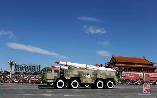 ↑某新型常规导弹方队通过天安门广场(2009年10月1日摄)。 新华社记者 李文摄